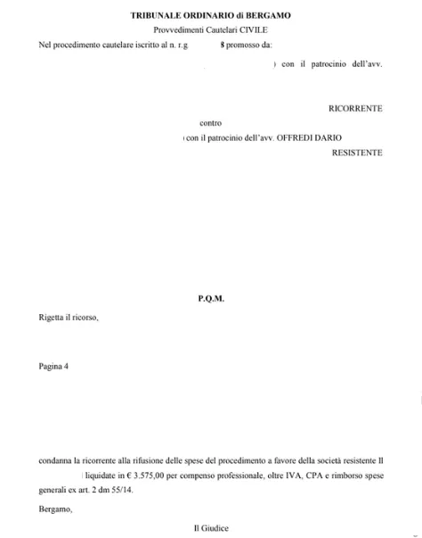 Tribunale di Bergamo - Accoglimento dell’opposizione a richiesta di un ricorso cautelare ex Art. 700 CPC in materia locatizia.